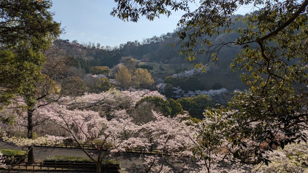 公園への道中も中腹以降満開で入り口から中腹にかけては少し花弁散ってきております。
